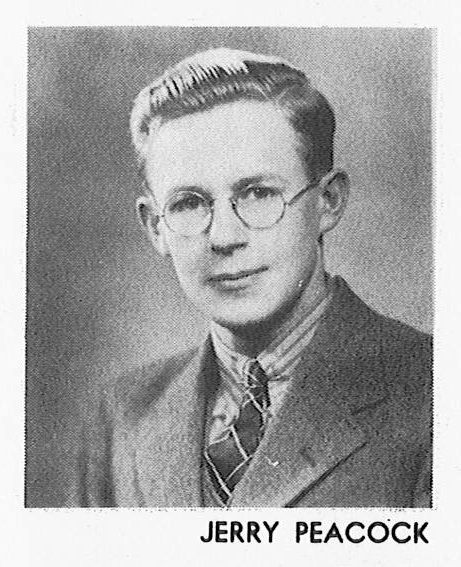 2. Jerry Peacock was a prolific illustrator. His cartoons appeared on the pages of the Collegian, the Wayne University student newspaper, from 1938 until his graduation in 1940. He also provided most of the illustration for the 1940 Wayne yearbook. He can be spotted in group photos in the 1937 and 1938 yearbooks, and his 1940 graduation photo is shown at right. In the early 1940s Jerry became a sketch artist on the WWJ-TV program "Junior Jamboree."